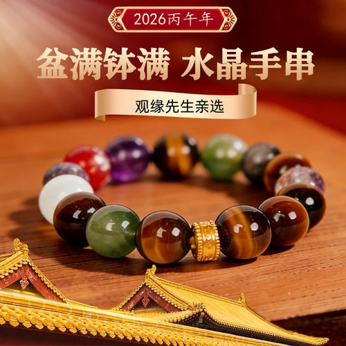 2026丙午年太岁黑金超七国风珠串寓意富足生肖天然水晶手串